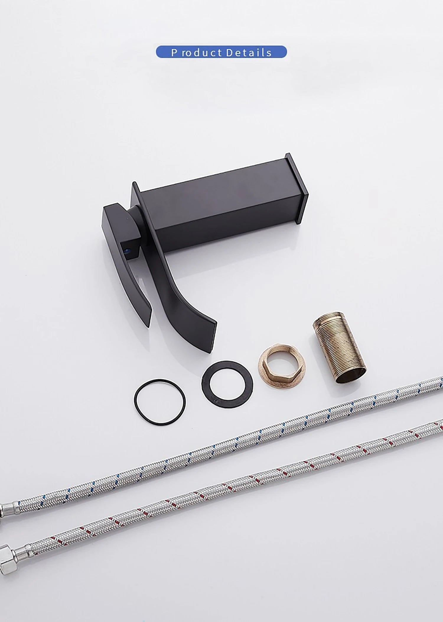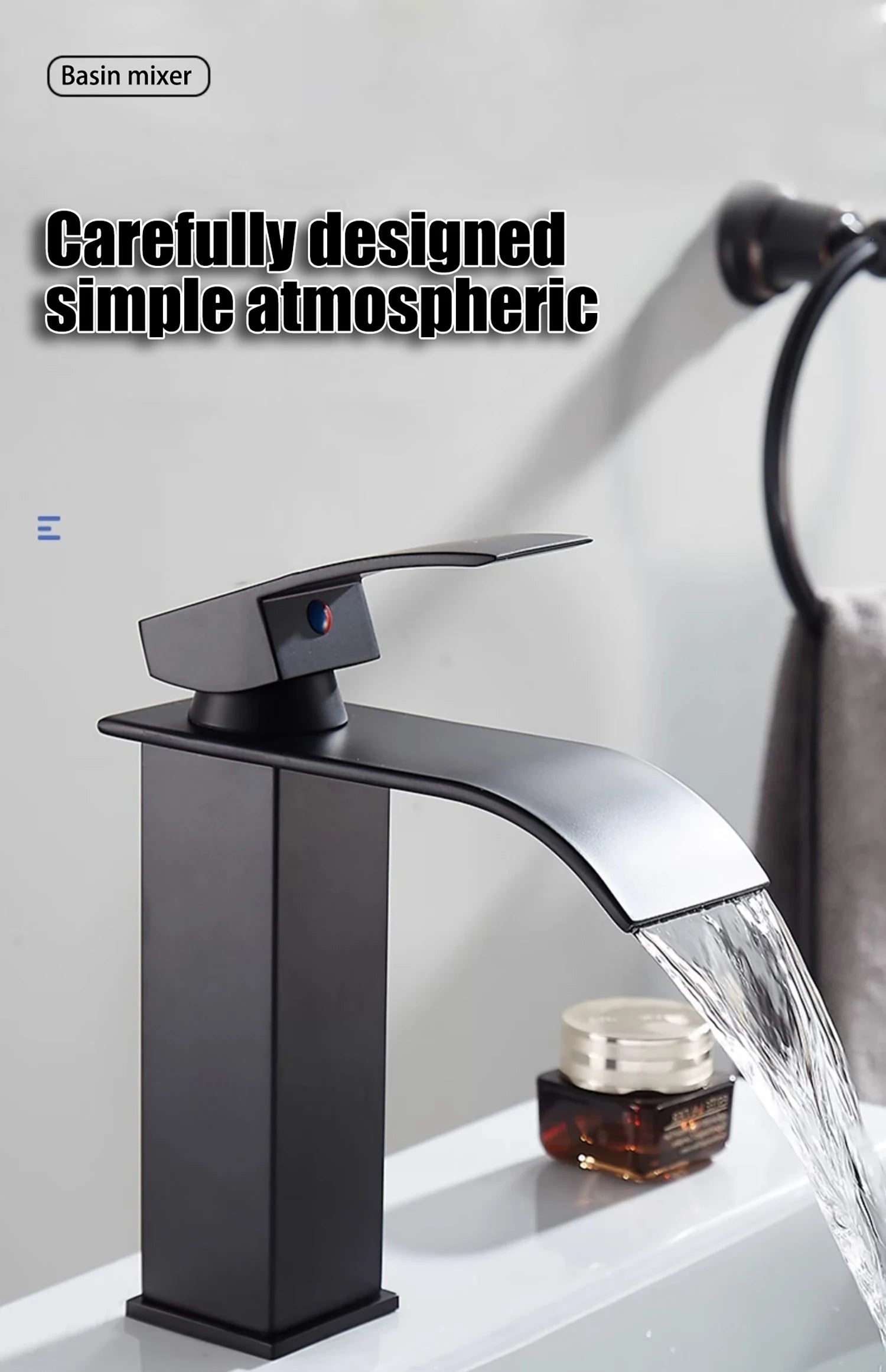 Waterfall style washbasin faucet black cold and hot all copper bathroom kitchen washbasin basin bathroom household use