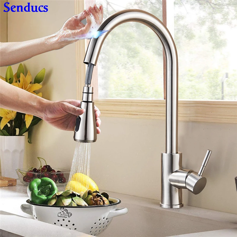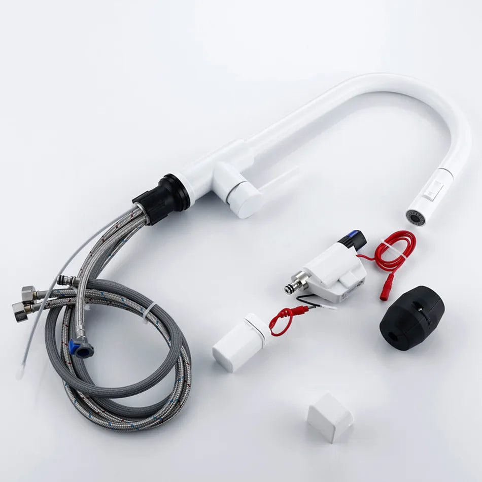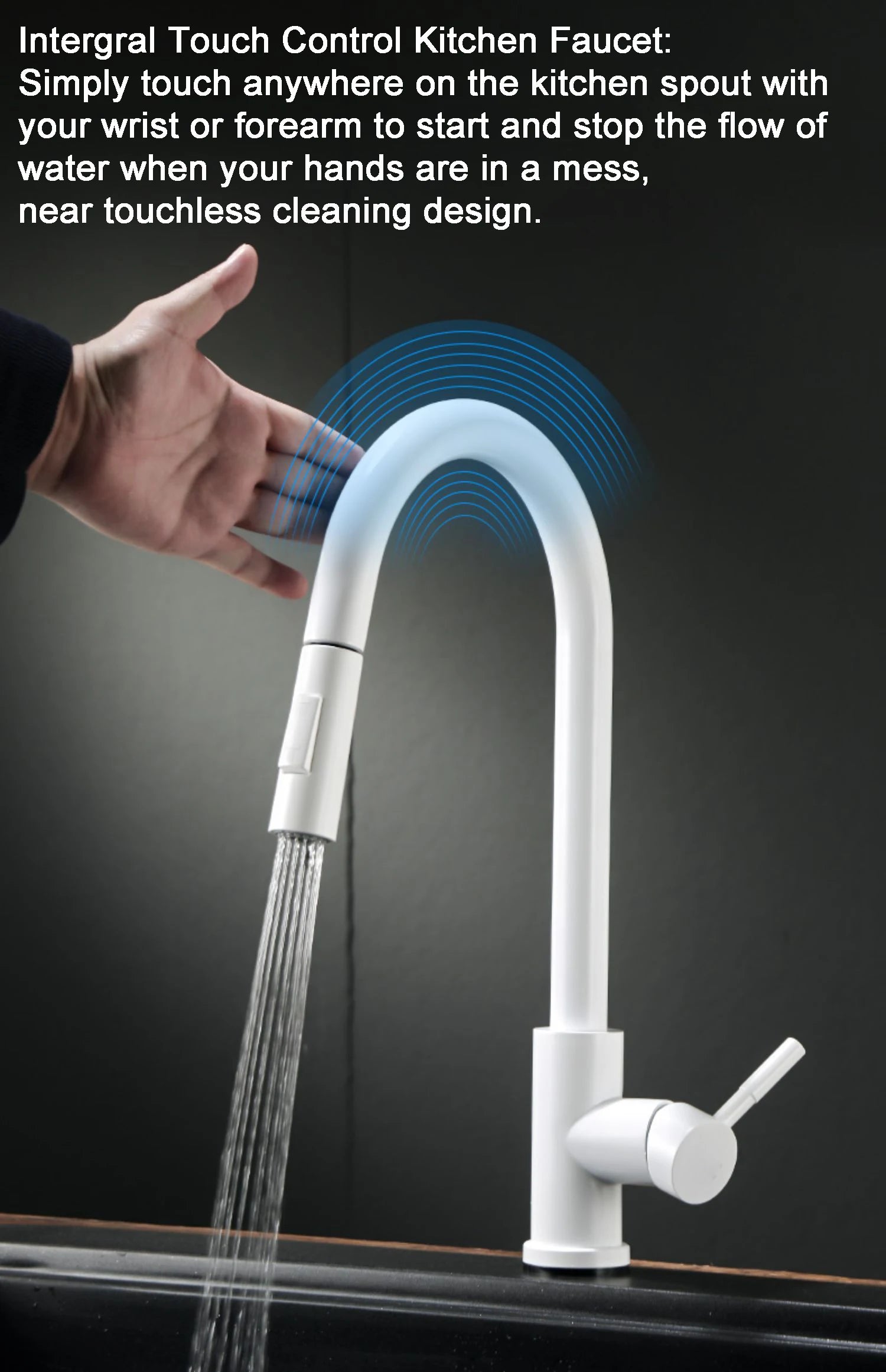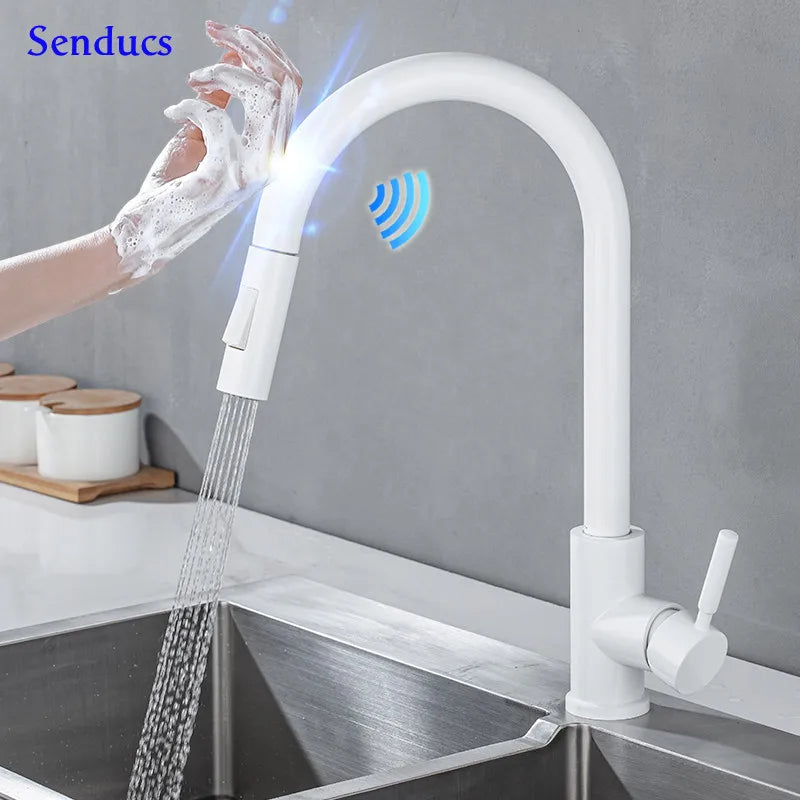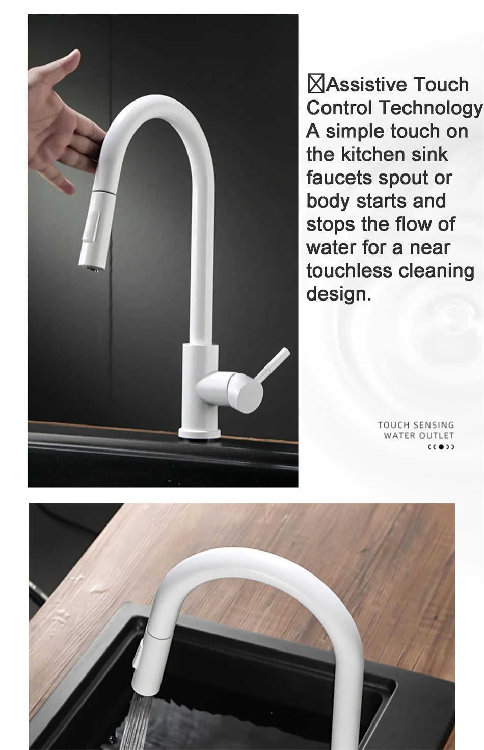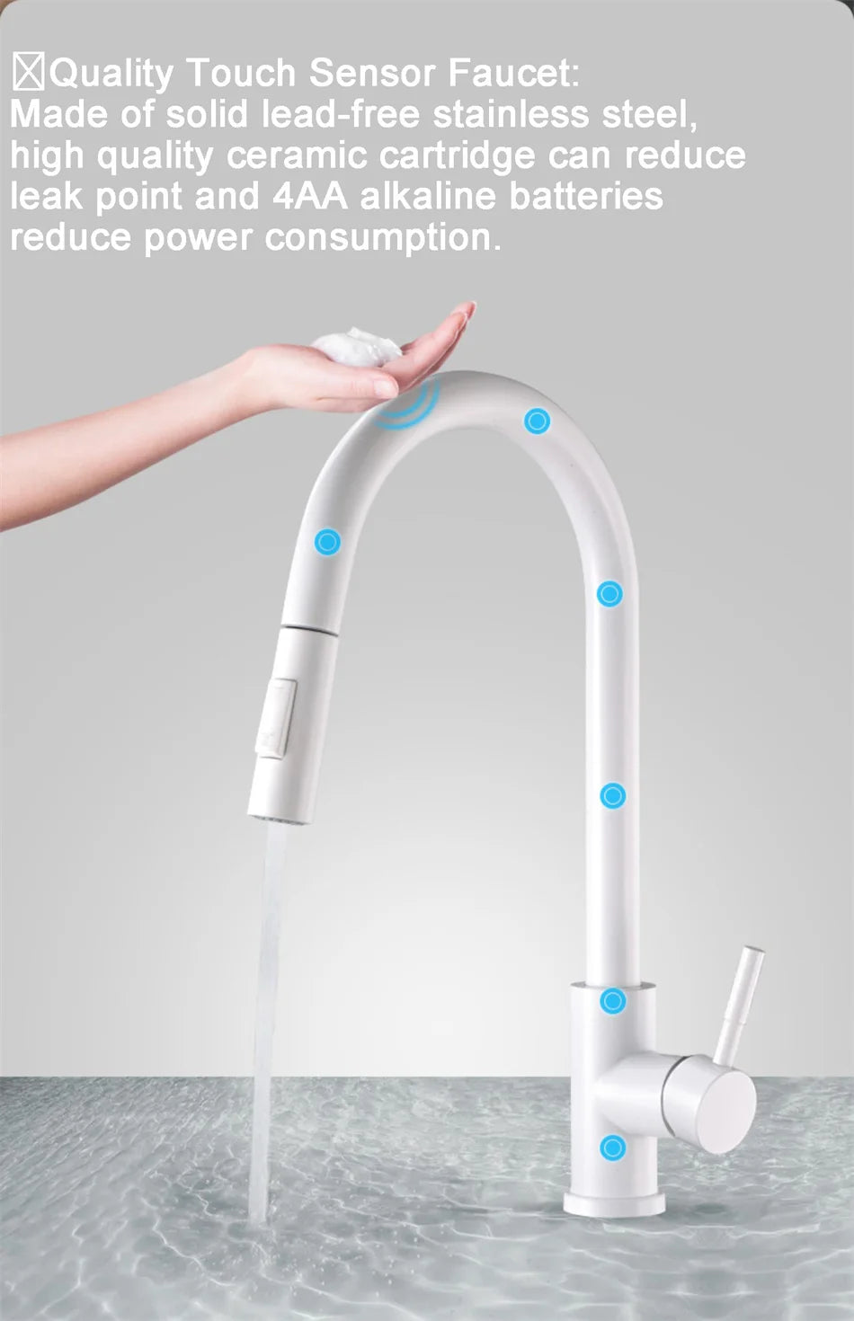White Sensor Pull Down Kitchen Faucets Hot and Cold Touch Stainless Steel Kitchen Faucets Mixer Home Sensor Touch Kitchen Taps