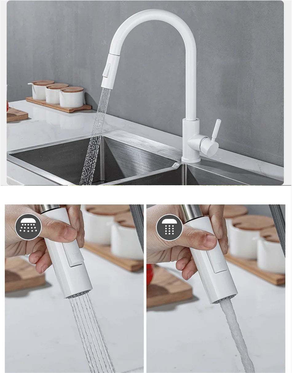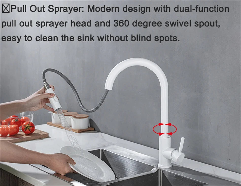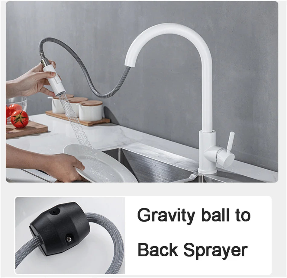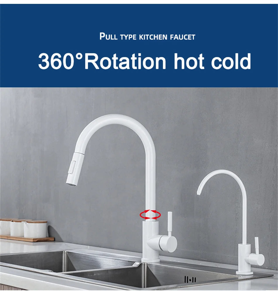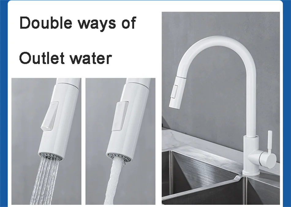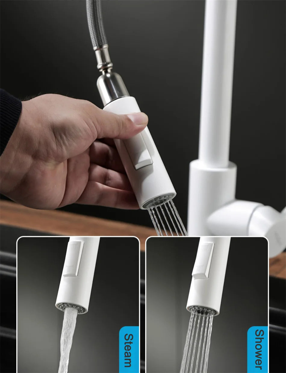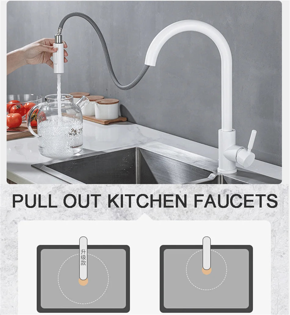 White Sensor Pull Down Kitchen Faucets Hot and Cold Touch Stainless Steel Kitchen Faucets Mixer Home Sensor Touch Kitchen Taps
