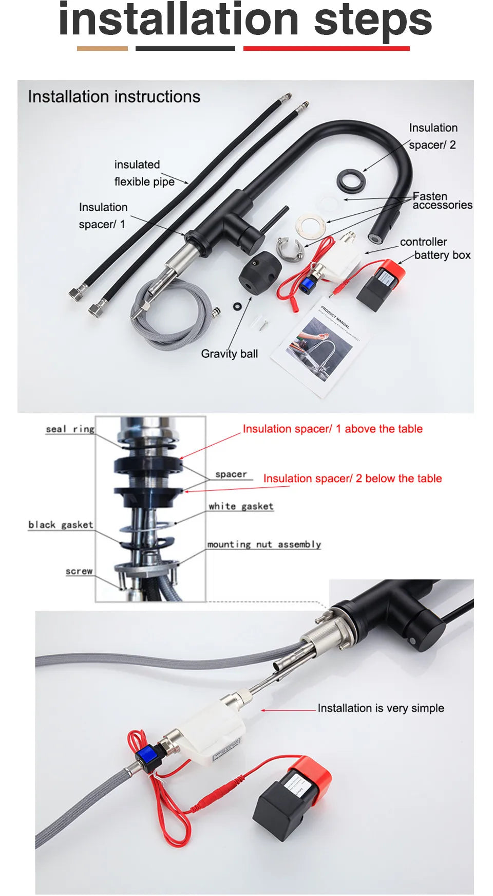 2. The faucet shall be electrically insulated from table and other pipeline, shall be assembled plastic spacer gasket when installed on the metallic table.