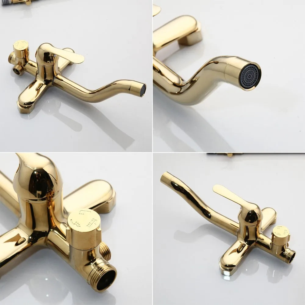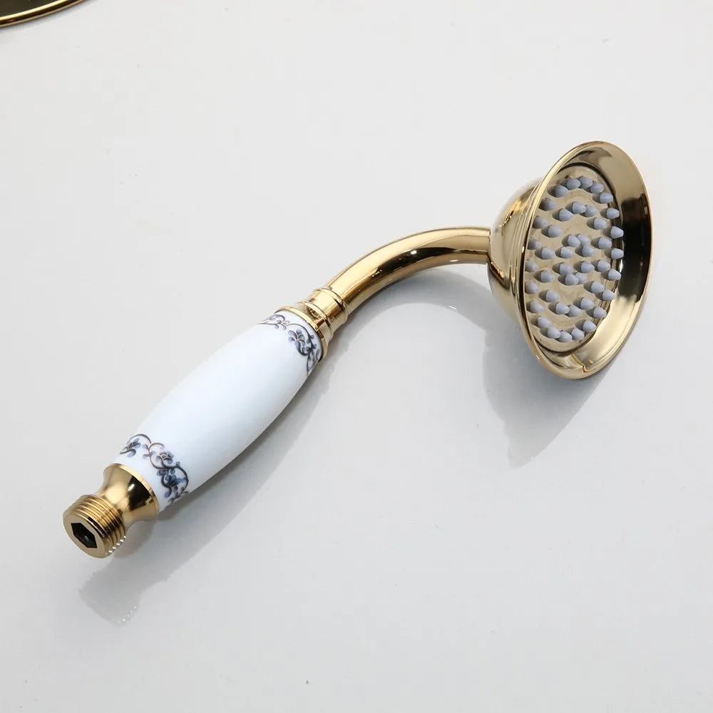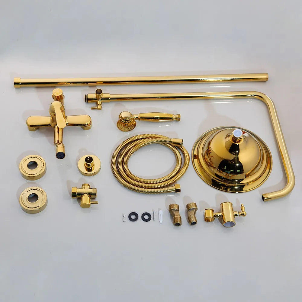 YANKSMART Gold Polished Bathroom Shower System Faucet Set Wall Mounted 3 Functions Rainfall Round Showers Head Mixer Water Tap