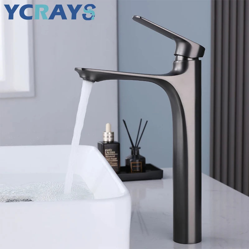 YCRAYS Brass Water Plating Gray Bathroom Sink Faucet Single Handle Brushed Gold Deck Mounted Wash Basin Tap Hot And Cold Mixer