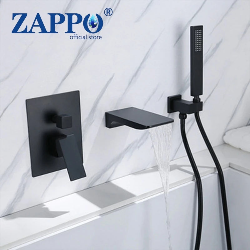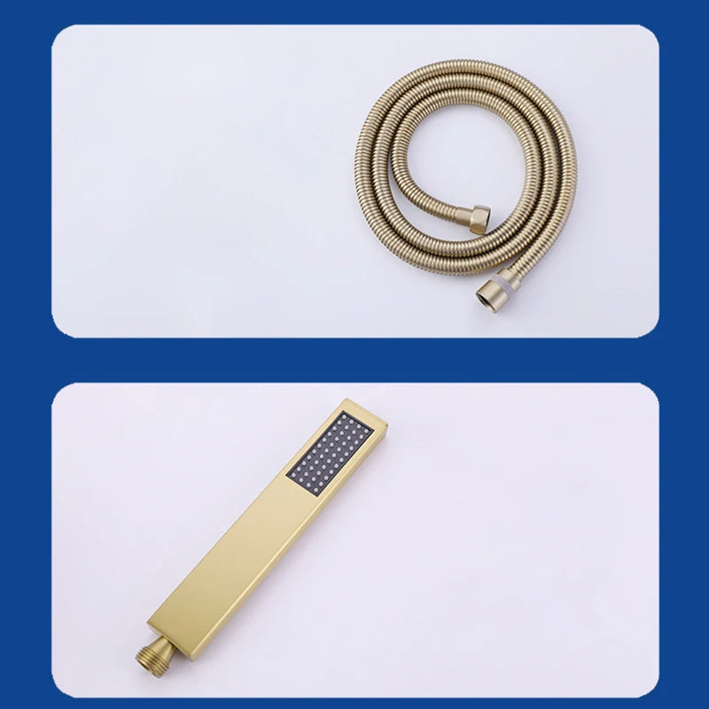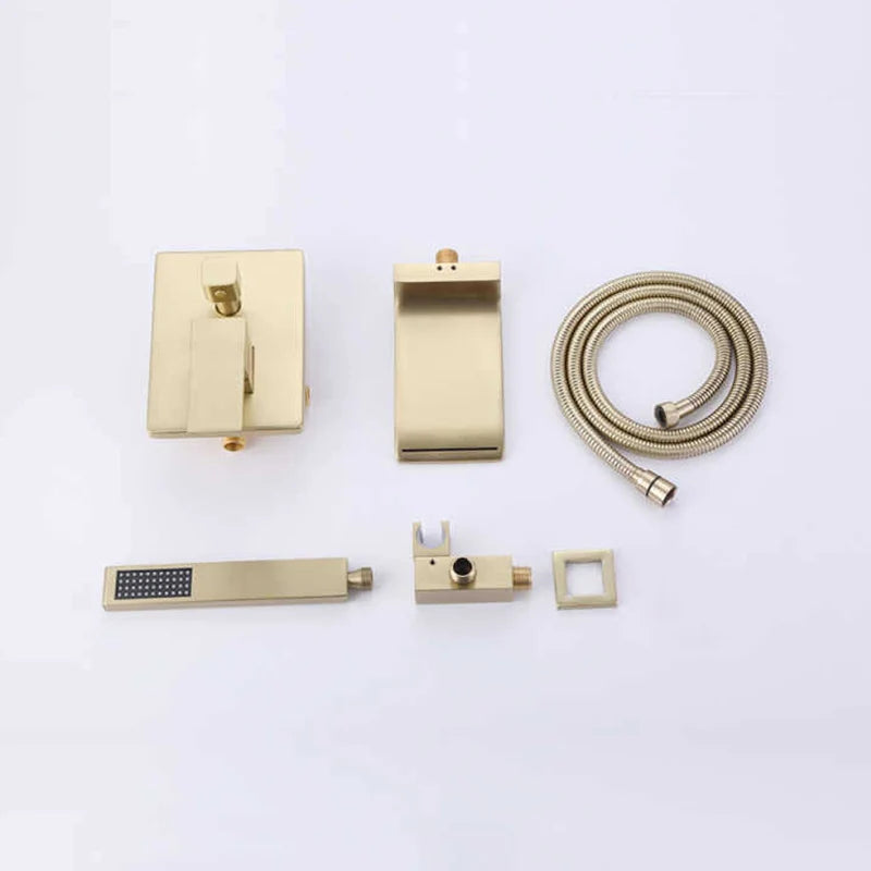 ZAPPO Brushed Gold Bathroom Bathtub Shower Set Waterfall Mixer Tap Wall Mount Solid Brass Shower Systerm w/Handheld Shower Head